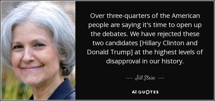 Over three-quarters of the American people are saying it's time to open up the debates. We have rejected these two candidates [Hillary Clinton and Donald Trump] at the highest levels of disapproval in our history.