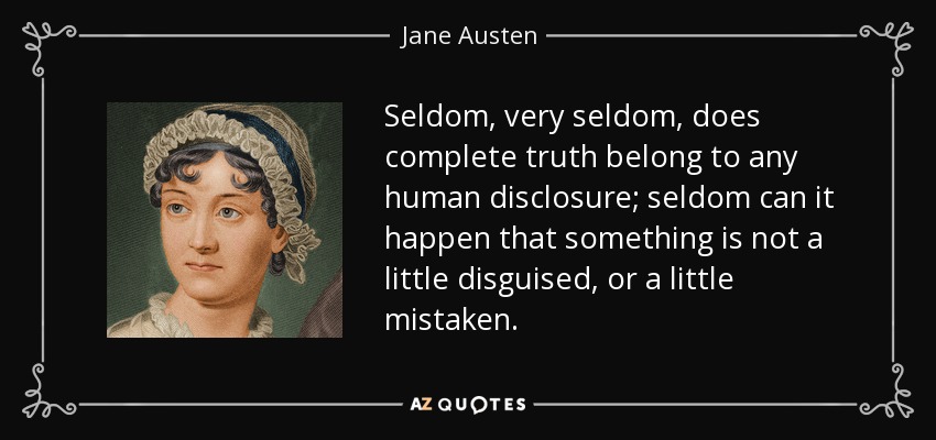 Seldom, very seldom, does complete truth belong to any human disclosure; seldom can it happen that something is not a little disguised, or a little mistaken.