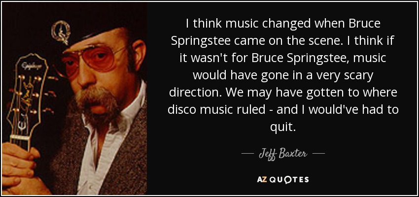 I think music changed when Bruce Springstee came on the scene. I think if it wasn't for Bruce Springstee, music would have gone in a very scary direction. We may have gotten to where disco music ruled - and I would've had to quit.