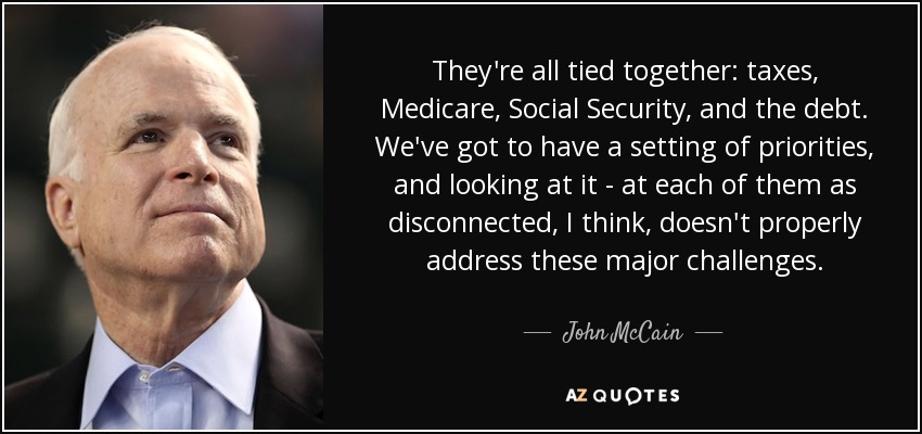 They're all tied together: taxes, Medicare, Social Security, and the debt. We've got to have a setting of priorities, and looking at it - at each of them as disconnected, I think, doesn't properly address these major challenges.