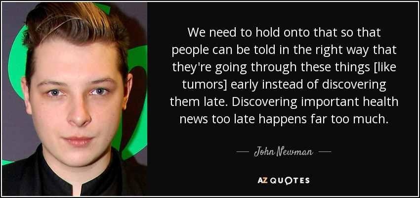 We need to hold onto that so that people can be told in the right way that they're going through these things [like tumors] early instead of discovering them late. Discovering important health news too late happens far too much.