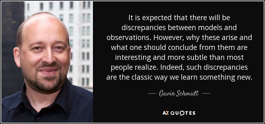 It is expected that there will be discrepancies between models and observations. However, why these arise and what one should conclude from them are interesting and more subtle than most people realize. Indeed, such discrepancies are the classic way we learn something new.