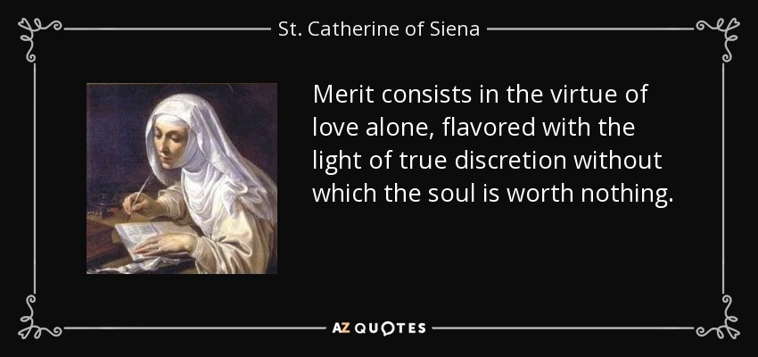 Merit consists in the virtue of love alone, flavored with the light of true discretion without which the soul is worth nothing.