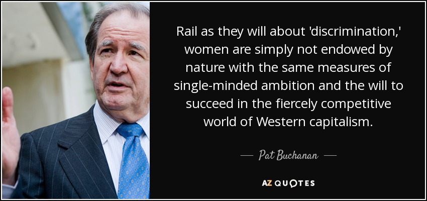 Rail as they will about 'discrimination,' women are simply not endowed by nature with the same measures of single-minded ambition and the will to succeed in the fiercely competitive world of Western capitalism.