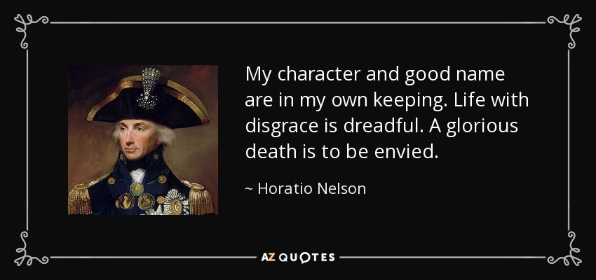 My character and good name are in my own keeping. Life with disgrace is dreadful. A glorious death is to be envied.