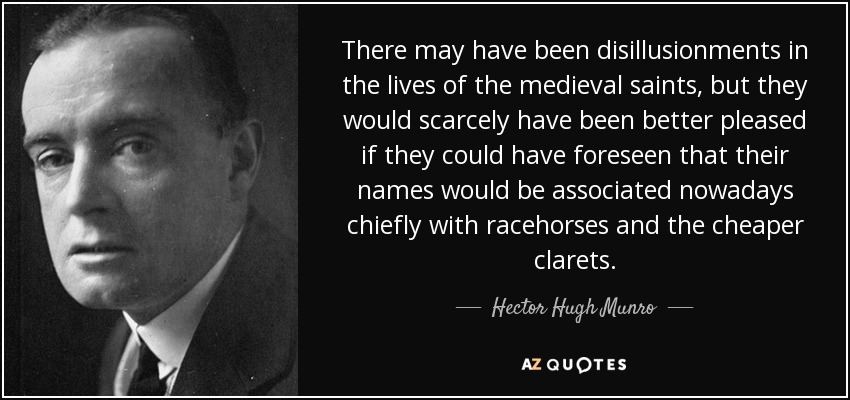There may have been disillusionments in the lives of the medieval saints, but they would scarcely have been better pleased if they could have foreseen that their names would be associated nowadays chiefly with racehorses and the cheaper clarets.