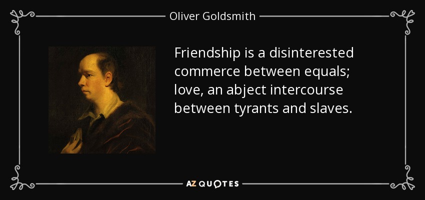 Friendship is a disinterested commerce between equals; love, an abject intercourse between tyrants and slaves.