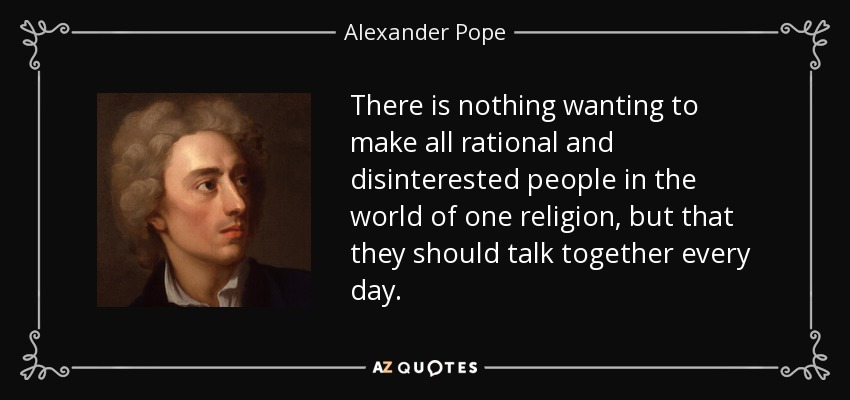 There is nothing wanting to make all rational and disinterested people in the world of one religion, but that they should talk together every day.