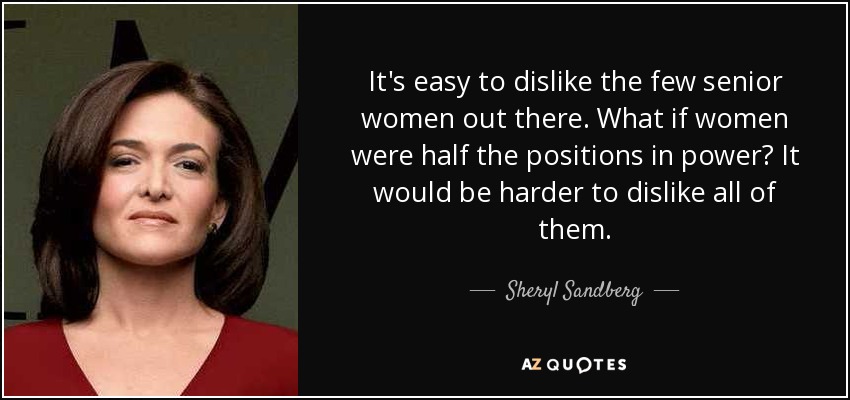 It's easy to dislike the few senior women out there. What if women were half the positions in power? It would be harder to dislike all of them.