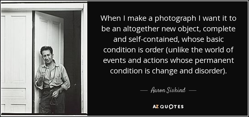 When I make a photograph I want it to be an altogether new object, complete and self-contained, whose basic condition is order (unlike the world of events and actions whose permanent condition is change and disorder).