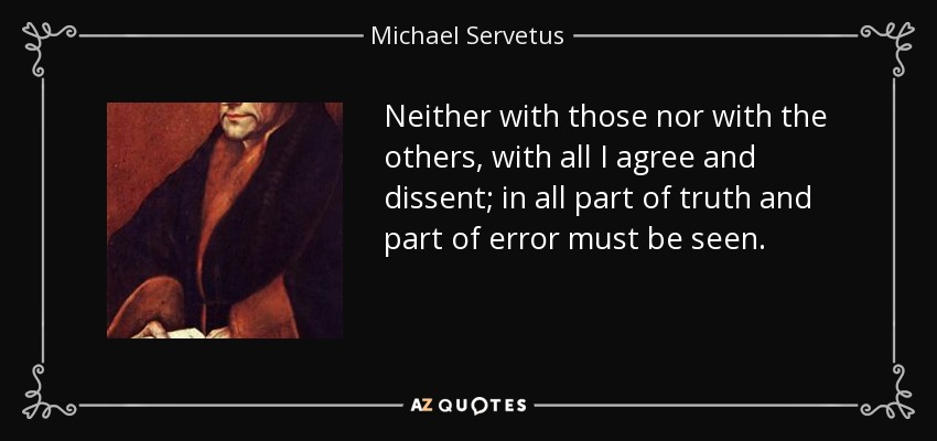 Neither with those nor with the others, with all I agree and dissent; in all part of truth and part of error must be seen.