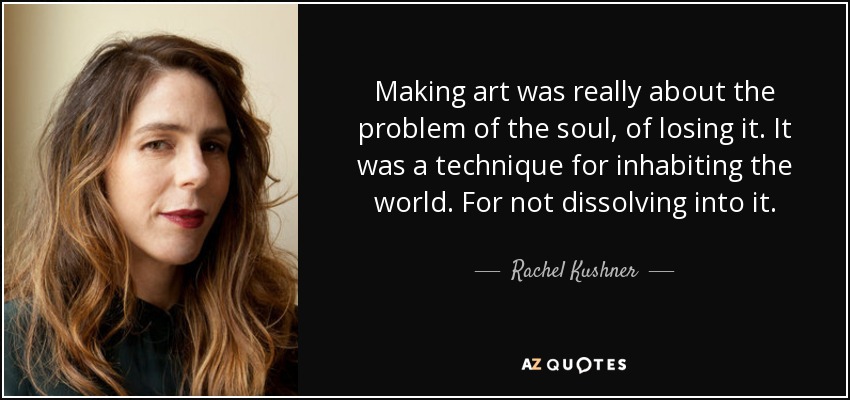 Making art was really about the problem of the soul, of losing it. It was a technique for inhabiting the world. For not dissolving into it.