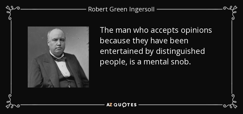 The man who accepts opinions because they have been entertained by distinguished people, is a mental snob.