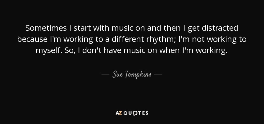 Sometimes I start with music on and then I get distracted because I'm working to a different rhythm; I'm not working to myself. So, I don't have music on when I'm working.