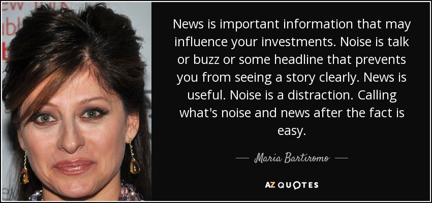 News is important information that may influence your investments. Noise is talk or buzz or some headline that prevents you from seeing a story clearly. News is useful. Noise is a distraction. Calling what's noise and news after the fact is easy.