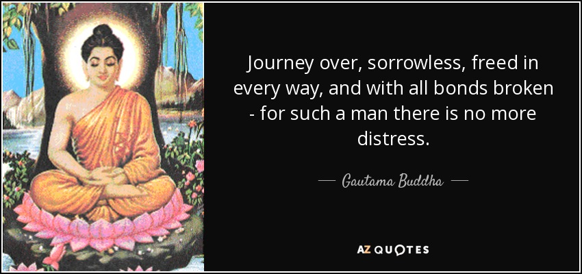 Journey over, sorrowless, freed in every way, and with all bonds broken - for such a man there is no more distress.