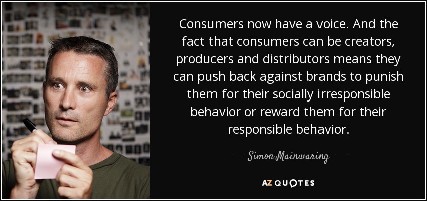 Consumers now have a voice. And the fact that consumers can be creators, producers and distributors means they can push back against brands to punish them for their socially irresponsible behavior or reward them for their responsible behavior.