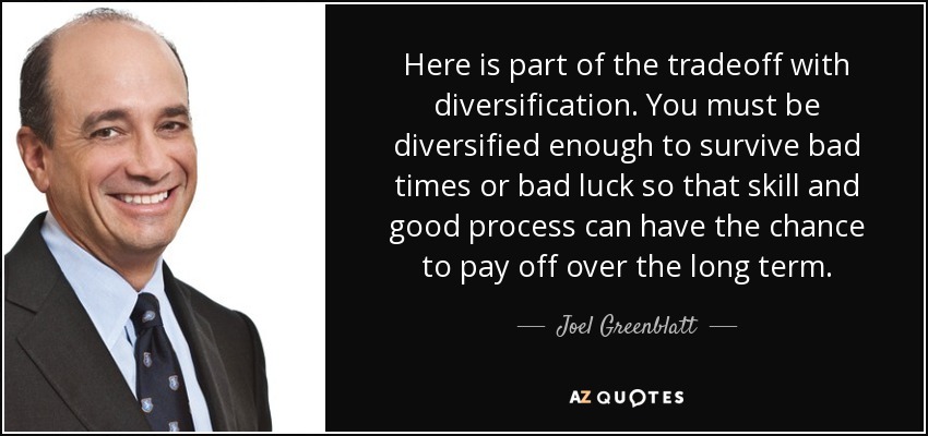 Here is part of the tradeoff with diversification. You must be diversified enough to survive bad times or bad luck so that skill and good process can have the chance to pay off over the long term.