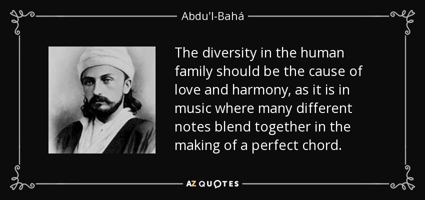 The diversity in the human family should be the cause of love and harmony, as it is in music where many different notes blend together in the making of a perfect chord.