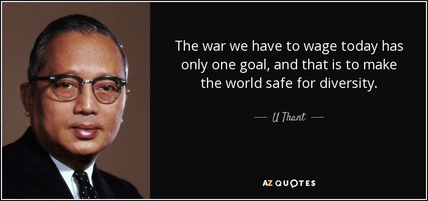 The war we have to wage today has only one goal, and that is to make the world safe for diversity.
