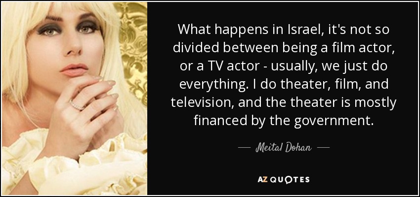 What happens in Israel, it's not so divided between being a film actor, or a TV actor - usually, we just do everything. I do theater, film, and television, and the theater is mostly financed by the government.