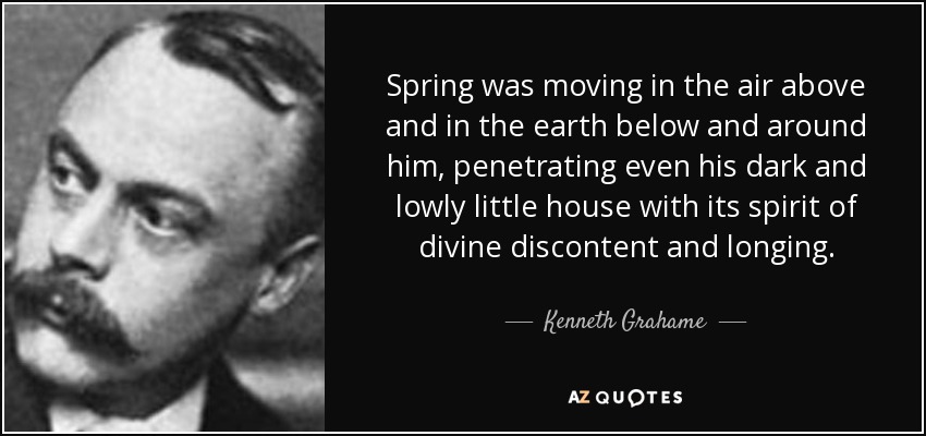 Spring was moving in the air above and in the earth below and around him, penetrating even his dark and lowly little house with its spirit of divine discontent and longing.