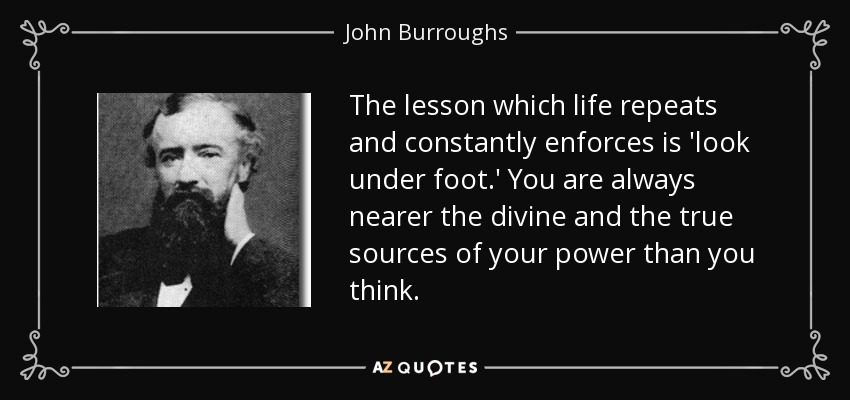 The lesson which life repeats and constantly enforces is 'look under foot.' You are always nearer the divine and the true sources of your power than you think.