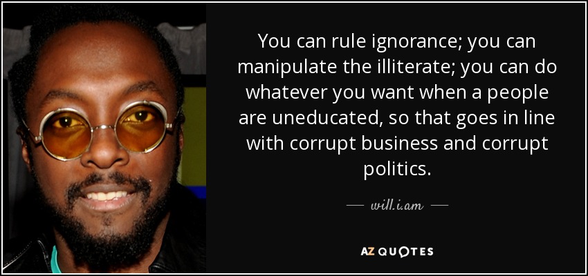 You can rule ignorance; you can manipulate the illiterate; you can do whatever you want when a people are uneducated, so that goes in line with corrupt business and corrupt politics.