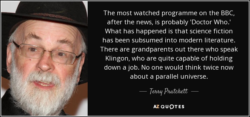 The most watched programme on the BBC, after the news, is probably 'Doctor Who.' What has happened is that science fiction has been subsumed into modern literature. There are grandparents out there who speak Klingon, who are quite capable of holding down a job. No one would think twice now about a parallel universe.