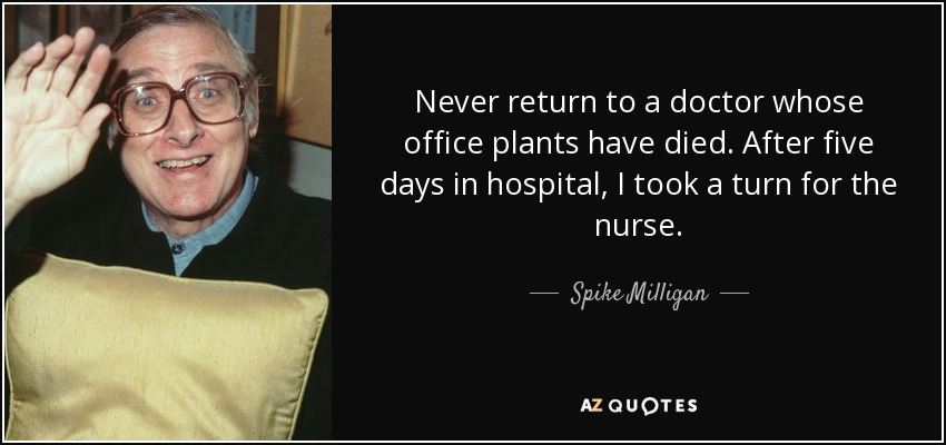 Never return to a doctor whose office plants have died. After five days in hospital, I took a turn for the nurse.