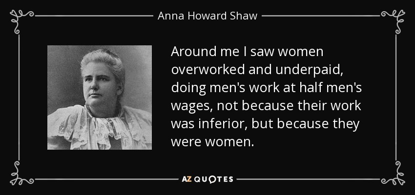 Around me I saw women overworked and underpaid, doing men's work at half men's wages, not because their work was inferior, but because they were women.