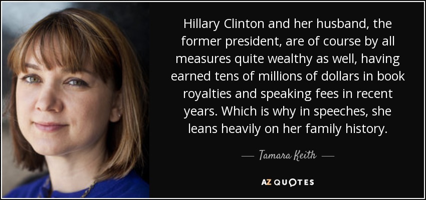 Hillary Clinton and her husband, the former president, are of course by all measures quite wealthy as well, having earned tens of millions of dollars in book royalties and speaking fees in recent years. Which is why in speeches, she leans heavily on her family history.