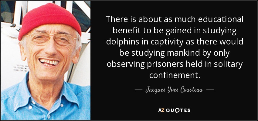 There is about as much educational benefit to be gained in studying dolphins in captivity as there would be studying mankind by only observing prisoners held in solitary confinement.