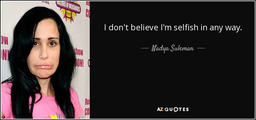 I don't believe I'm selfish in any way.