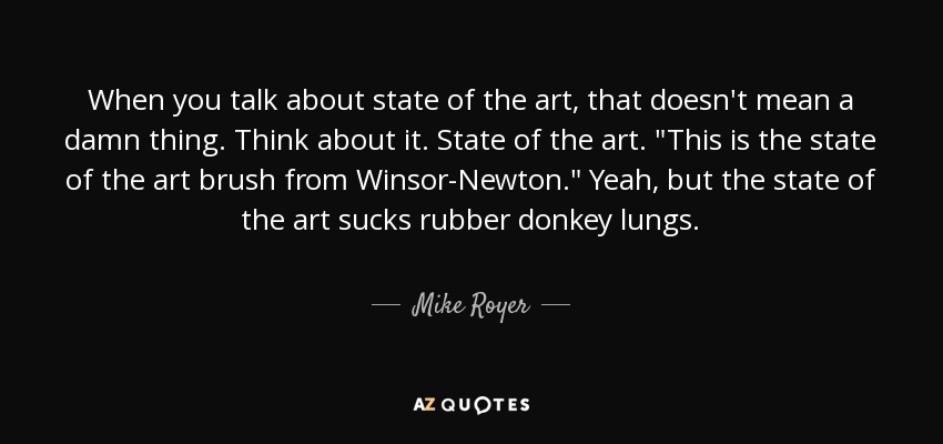 When you talk about state of the art, that doesn't mean a damn thing. Think about it. State of the art. "This is the state of the art brush from Winsor-Newton." Yeah, but the state of the art sucks rubber donkey lungs.