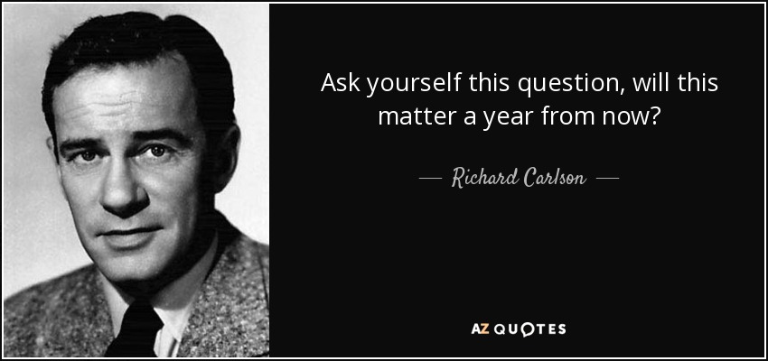 Ask yourself this question, will this matter a year from now?