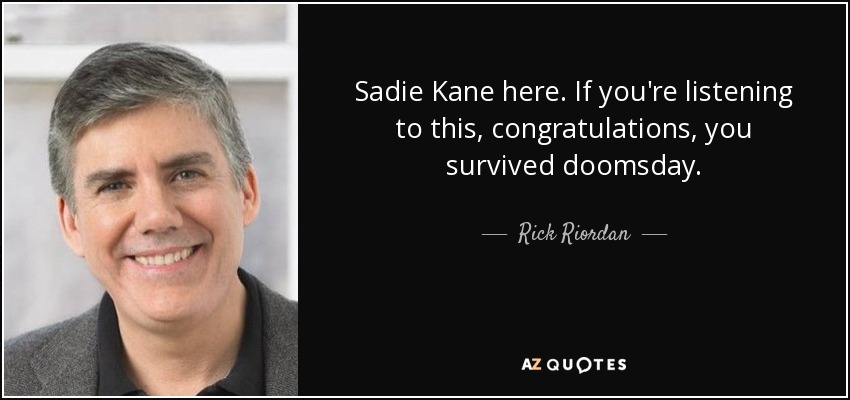 Sadie Kane here. If you're listening to this, congratulations, you survived doomsday.