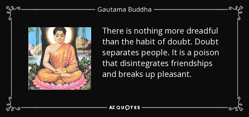 There is nothing more dreadful than the habit of doubt. Doubt separates people. It is a poison that disintegrates friendships and breaks up pleasant.