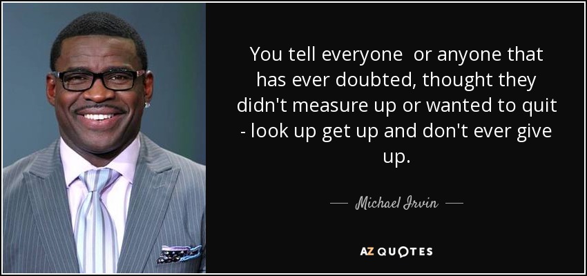 You tell everyone or anyone that has ever doubted, thought they didn't measure up or wanted to quit - look up get up and don't ever give up.