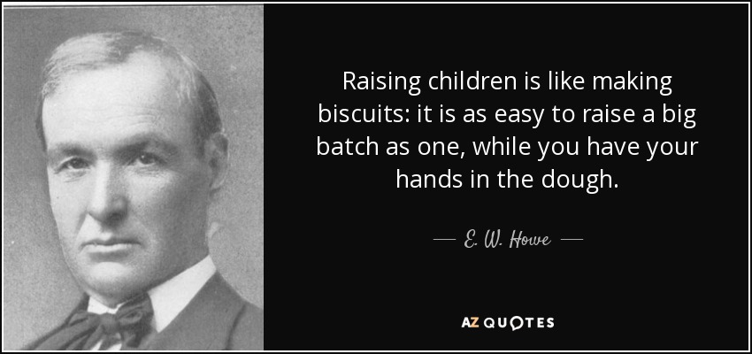 Raising children is like making biscuits: it is as easy to raise a big batch as one, while you have your hands in the dough.
