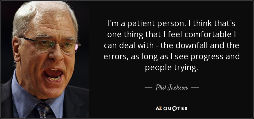 I'm a patient person. I think that's one thing that I feel comfortable I can deal with - the downfall and the errors, as long as I see progress and people trying.