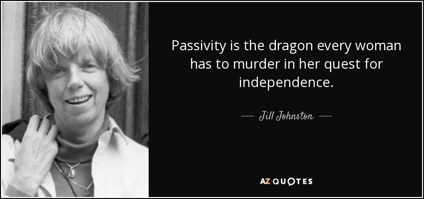 Passivity is the dragon every woman has to murder in her quest for independence.