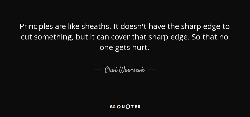 Principles are like sheaths. It doesn't have the sharp edge to cut something, but it can cover that sharp edge. So that no one gets hurt.