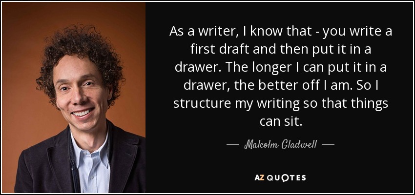 As a writer, I know that - you write a first draft and then put it in a drawer. The longer I can put it in a drawer, the better off I am. So I structure my writing so that things can sit.