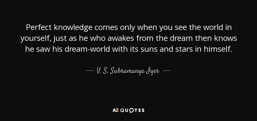 Perfect knowledge comes only when you see the world in yourself, just as he who awakes from the dream then knows he saw his dream-world with its suns and stars in himself.