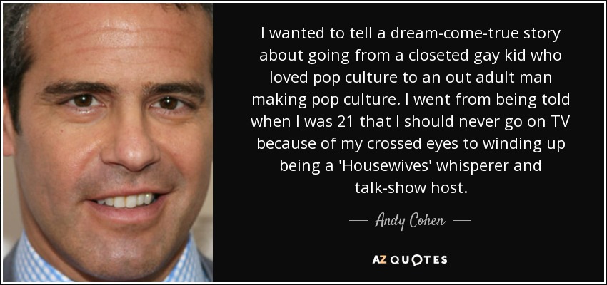 I wanted to tell a dream-come-true story about going from a closeted gay kid who loved pop culture to an out adult man making pop culture. I went from being told when I was 21 that I should never go on TV because of my crossed eyes to winding up being a 'Housewives' whisperer and talk-show host.