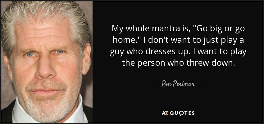My whole mantra is, "Go big or go home." I don't want to just play a guy who dresses up. I want to play the person who threw down.