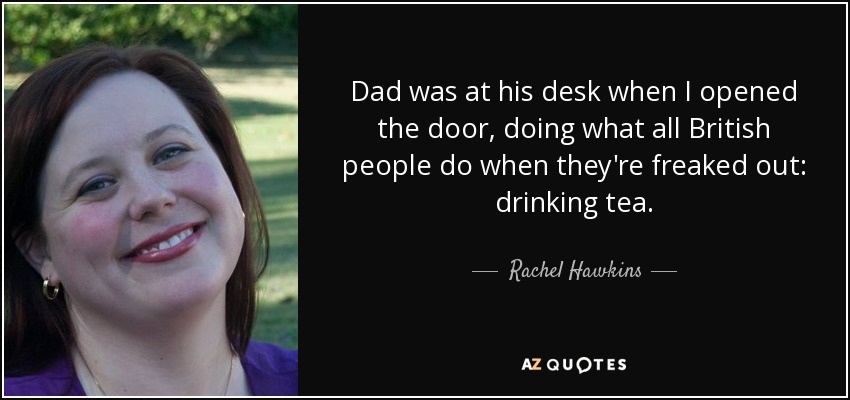 Dad was at his desk when I opened the door, doing what all British people do when they're freaked out: drinking tea.