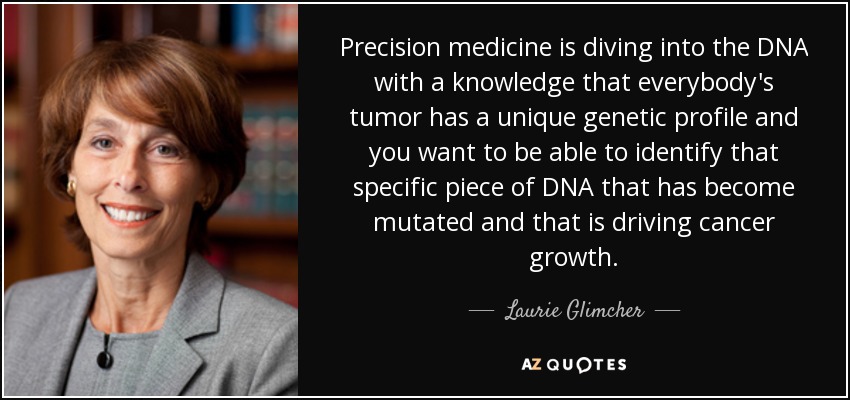 Precision medicine is diving into the DNA with a knowledge that everybody's tumor has a unique genetic profile and you want to be able to identify that specific piece of DNA that has become mutated and that is driving cancer growth.