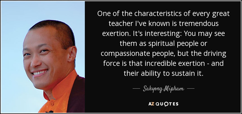 One of the characteristics of every great teacher I've known is tremendous exertion. It's interesting: You may see them as spiritual people or compassionate people, but the driving force is that incredible exertion - and their ability to sustain it.